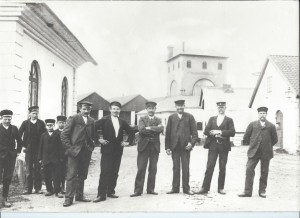 Fr. v. Otto Strömbom, Edvard Eriksson från Dorkarby, två okända, Herman Blanck, Reinhold Gilljam, båtförare August Staaf, Johan Strömberg, Axel Lindblom, Johan Lundgren